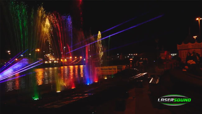Water fountains, lasers, flames and fireworks